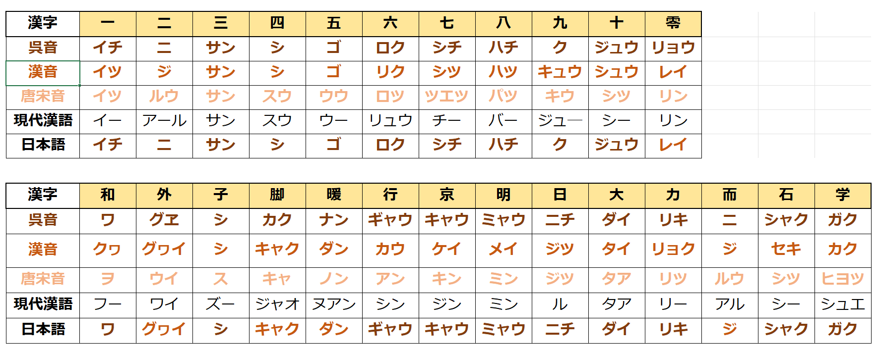・漢音-中国大陸の北方系(黄河中流域・長安)の発音(遣唐使等を中心に7~9世紀に日本に入る)